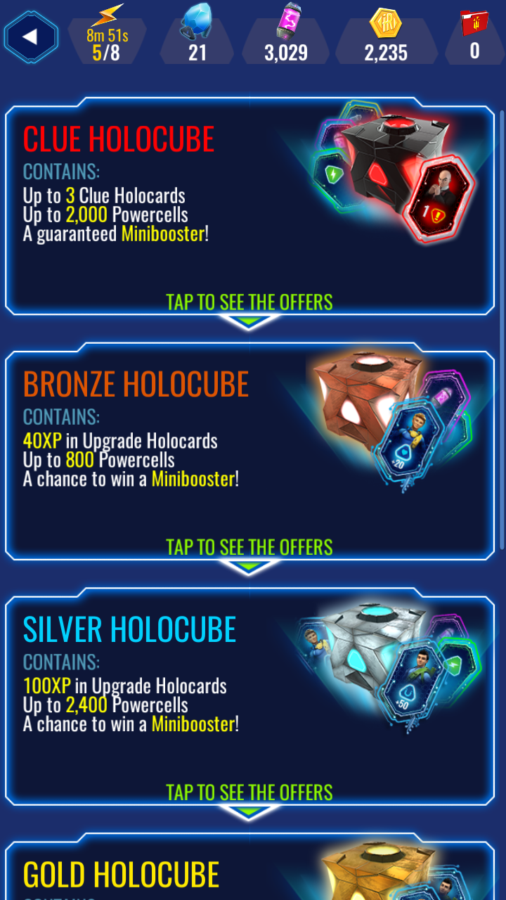 キャラやマシンのアップグレードには、このホロキューブを開ける必要が出てくるけど、ランクが上になるほど、コストがかかるので、初めのうちはコイン2,000枚で手に入るブロンズ1個から開けていくといいカモ。