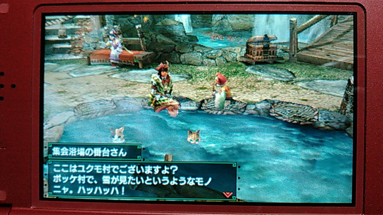 ネコは入ってるのにハンターさんは足湯かよ!