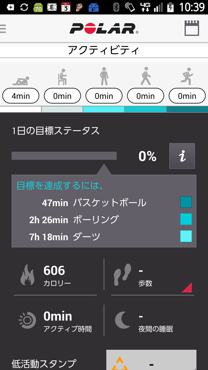 悪くないけど、毎日の記録を保管するポラールフローで、一日の運動目標の目安が半端ないww