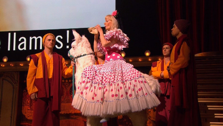 ラマ(僧)に引かれるラマ(動物)に乗ってキャロルさん登場。彼女もパイソンズに欠かせないですもんね( ^ω^)